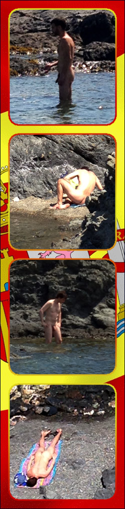 Il fallait donc s'en douter, ma destination pour mes premières vacances de jeune homme célibataire et avide de découvertes était toute tracée : la péninsule ibérique por supuesto ! Aujourd'hui encore, maintenant que je suis sagement casé, mon homme sait qu'il peut me combler de joie avec un petit week-end surprise chez nos voisins du Sud. (Nous y étions d'ailleurs le week-end dernier, où j'ai pris les photos des garçons des criques qui illustrent ce papier...). Ah l'Espagne ! Il y fait tellement bon vivre... Quand on pense que le mariage y est ouvert pour les LGBT depuis 2005, quand on voit que tout s'est passé normalement ensuite sans qu'il y ait la chienlit dans les rues comme nous la connaissons ici... *soupirs*