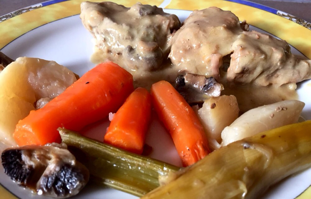 Une variation de la blanquette de veau traditionnelle, servie ici non pas avec du riz mais cuisinée avec des légumes...